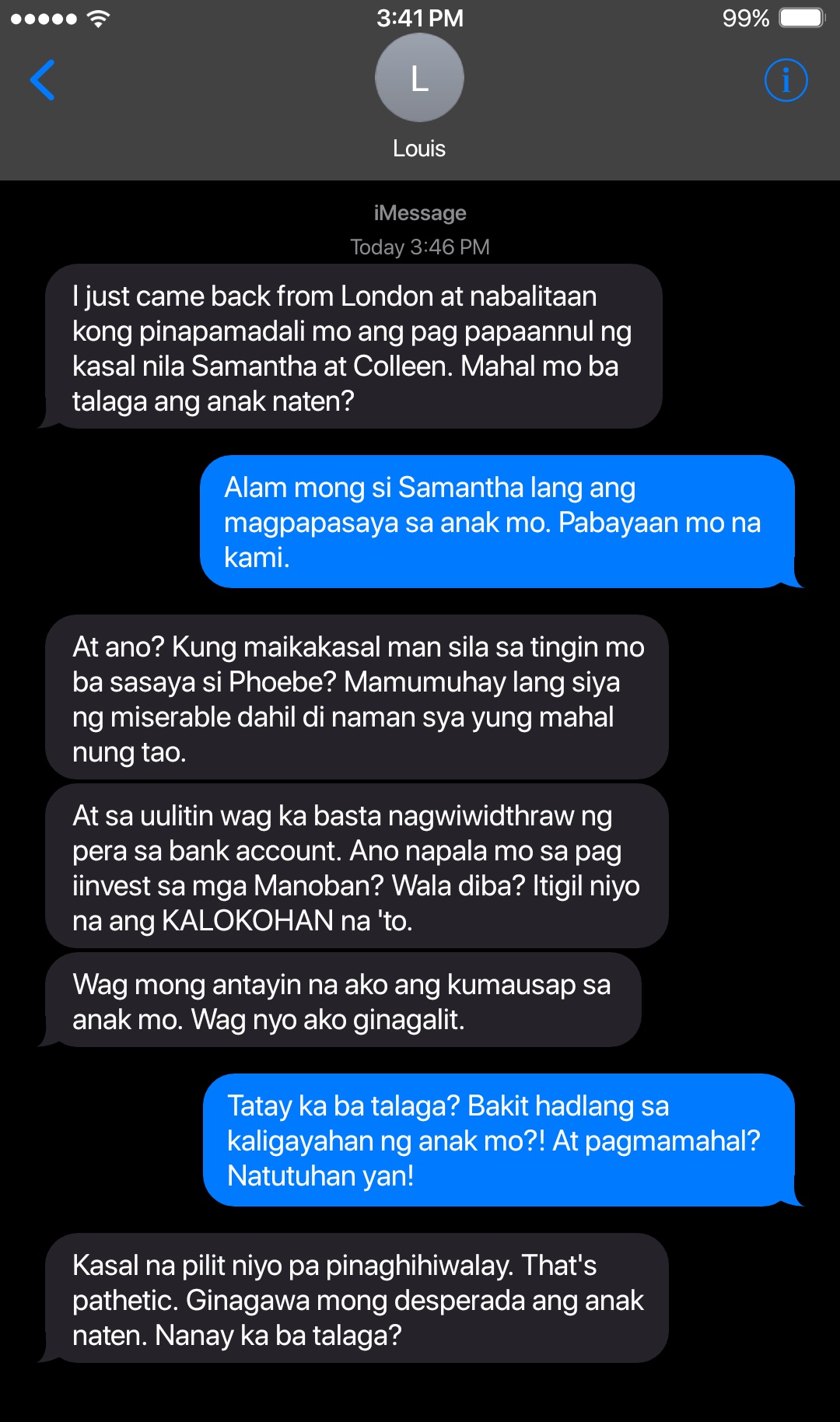Kung gusto mong magkaayos kayo ng asawa mo layuan mo na ang babaeng yun bakas sa boses ni Dad ang galit niya. Many geniuses are not rich. Kayo na lang kakausapin ko naguguluhan kasi ako.